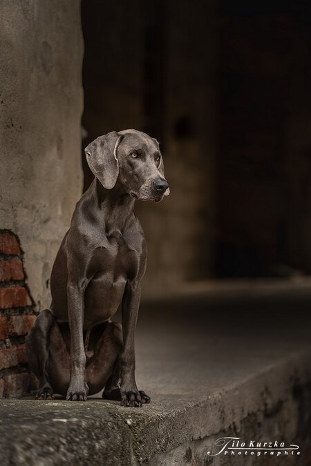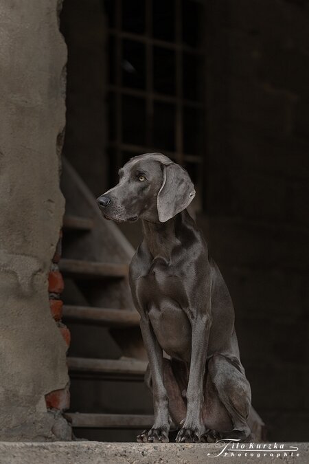 Weimaraner und ich hatte das große Glück das ich mit ihm ein Shooting in einem ehmaligen Kloster