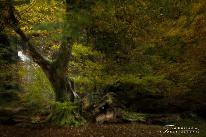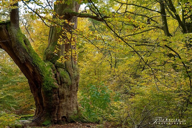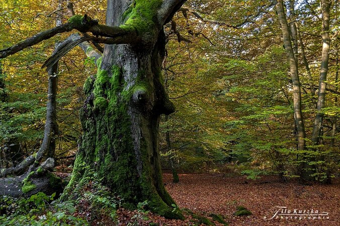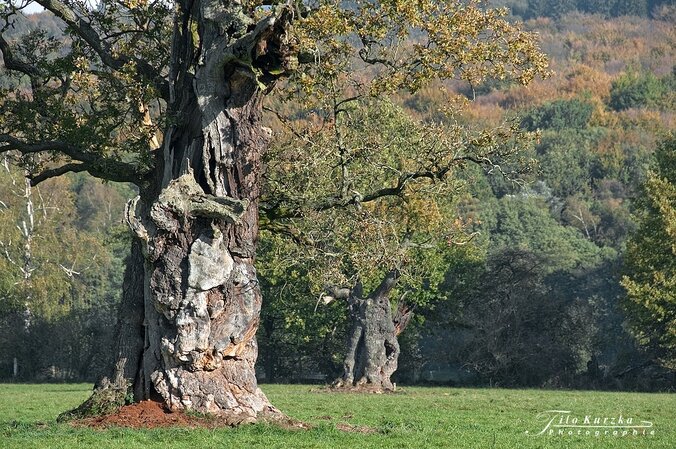Etwa eine Autostunde von mir entfernt, mitten im Reinhardswald, in der Nähe der Sababurg, liegt der Urwald Sababurg. Seit etwa 1907 wird die Waldfläche des heutigen Urwaldes nicht mehr bewirtschaftet und steht seitdem unter Naturschutz. Somit ist der Urwald Sababurg das älteste Naturschutzgebiet in Hessen. Auf einer Fläche von ca. 90 ha stehen neben Buchen auch Alteichen, die eine außergewöhnliche Größe erreicht haben. Zu den bekanntesten Bäumen des Urwald Sababurg gehören die „Kamineiche“ und die „Wappeneiche“ mit einem Umfang von jeweils weit über 7m. Mit ihrem Alter, der Form und ihrer Größe, gehören die beiden Eichen zu den meistfotografierten Bäumen in Deutschland.