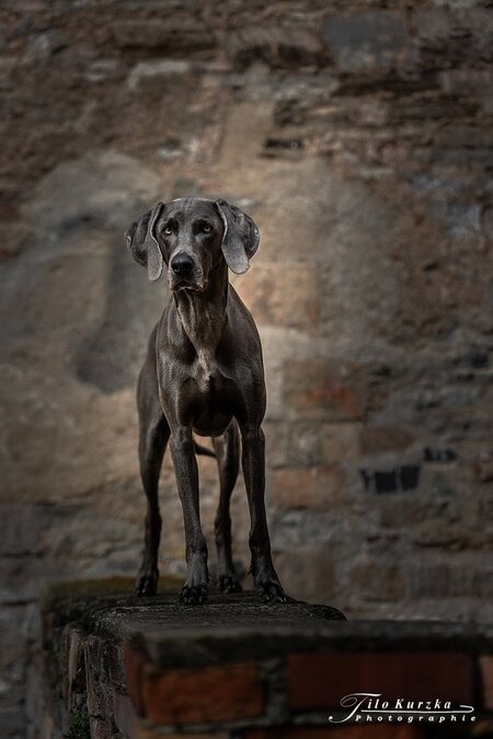 Weimaraner und ich hatte das große Glück das ich mit ihm ein Shooting in einem ehmaligen Kloster